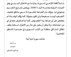 وأكد البيان على أن "أحرار حوران وثوارها إذ يقومون بالتصدي لعدوان إيران وميلشياتها الطائفية فهو يأتي في سياق الدفاع عن الثورة وأهدافها بعيداً عن أي تدخل خارجي".